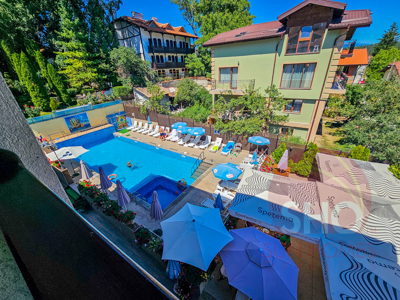 Aquilon spa aparthotel is situated in Banya with its famous under ground thermal spa water running through the town making an ideal location for people seeking its therapeutic and medical benefits. The apart hotel boasts outdoor thermal swimming pool and spa centre, private parking, reception , lobby bar/restaurant, working lifts and garden. Banya town has several spa hotels, bars and restaurants and is 5km from Bansko ski resort and 2km from Razlog.