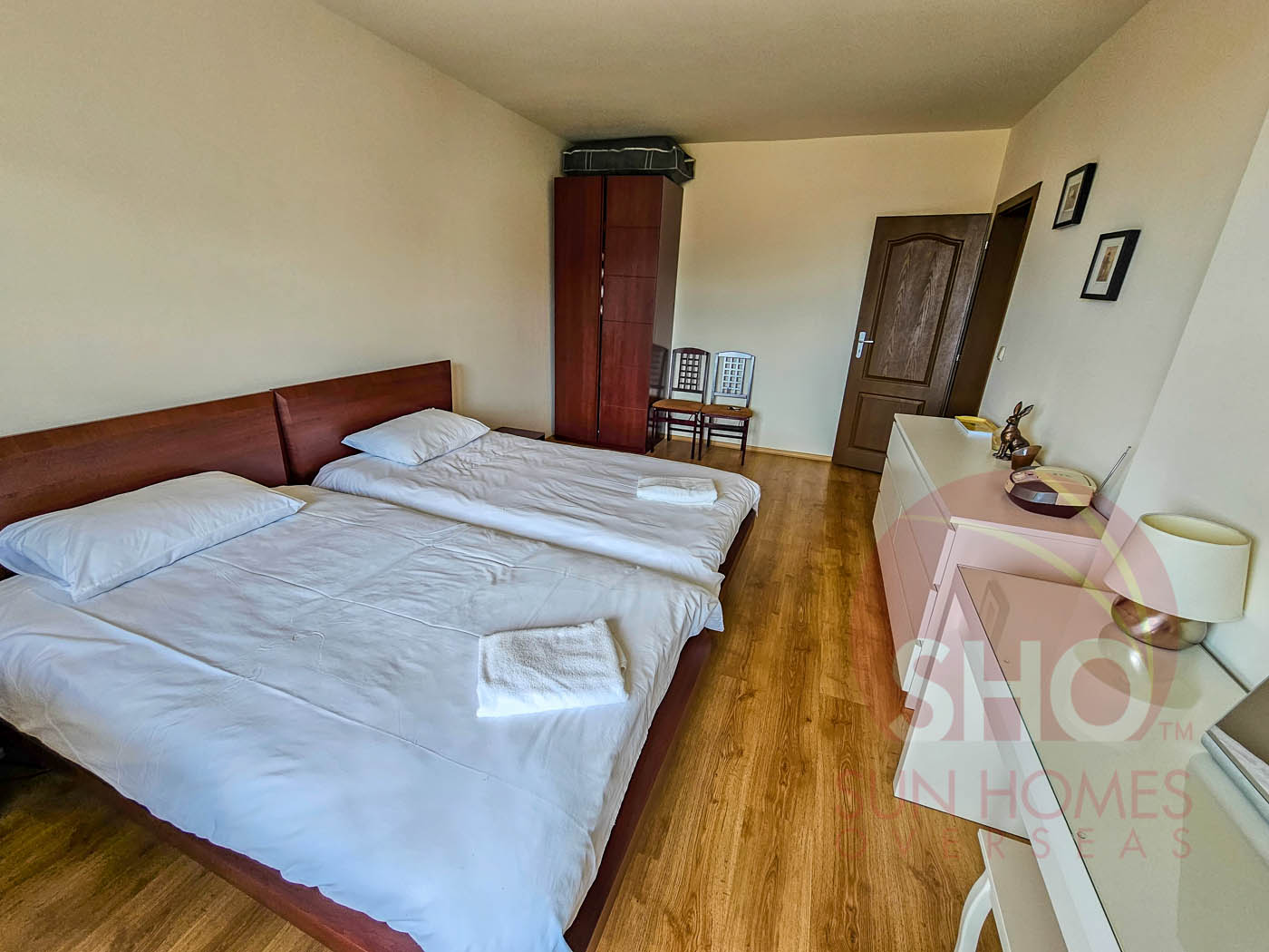 Viewing is recommended of this 1st floor 1 bedroom apartment which is to be sold furnished and would be an easy conversion to a 2 bedroom. The property consists of an entrance, fully tiled bathroom with shower cabin, fully equipped kitchen with white goods, lounge area with 2 sofabeds/TV/storage units, very large double bedroom with bed/wardrobe/storage units. Patio door opens from the bedroom onto the balcony which has great views to the mountains.