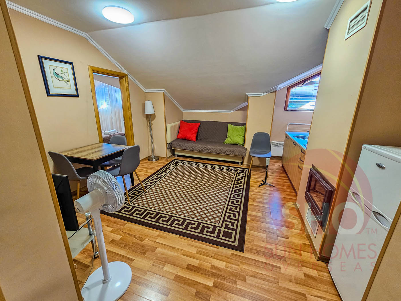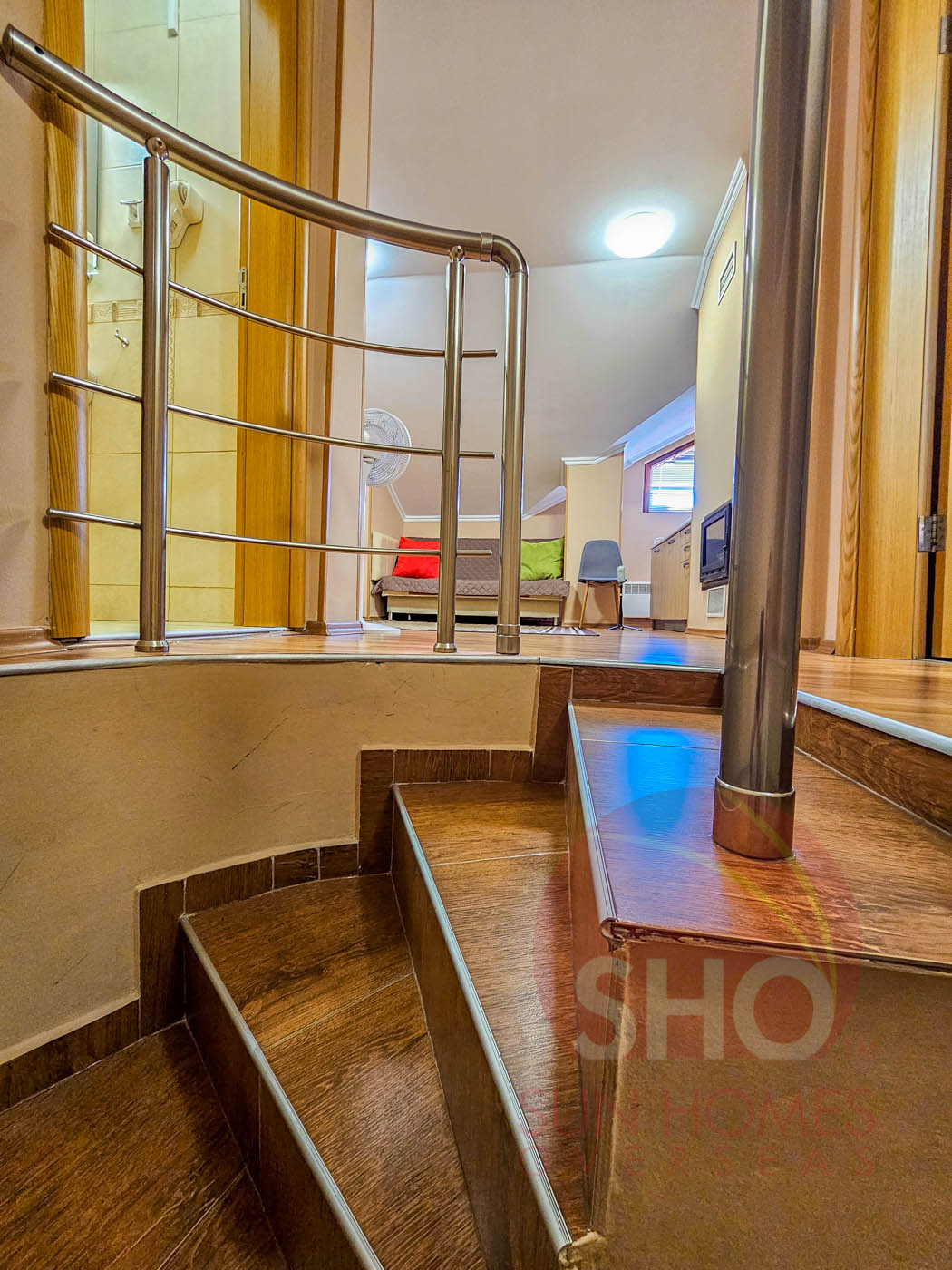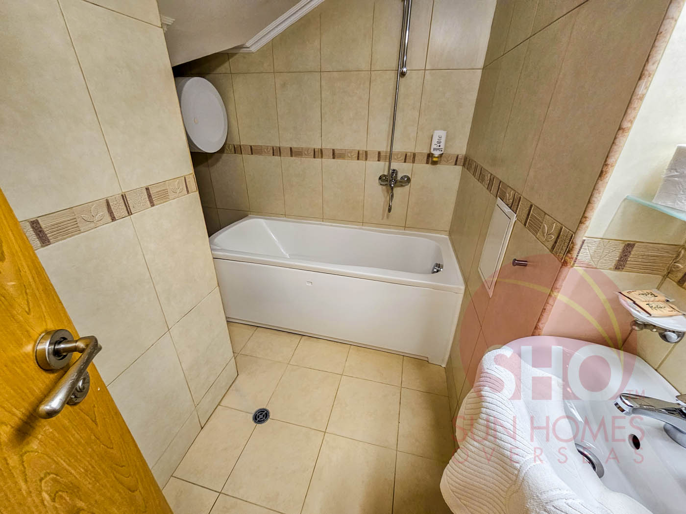 Viewing is recommended of this top floor penthouse level 2 bedroom apartment which is to be sold furnished. The property consists of a spiral staircase entrance, fully tiled bathroom with bathtub /over shower, fully equipped kitchen with white goods, dining table / chairs, lounge area with sofa bed / TV/ storage units, 2 double bedrooms with beds / storage units.